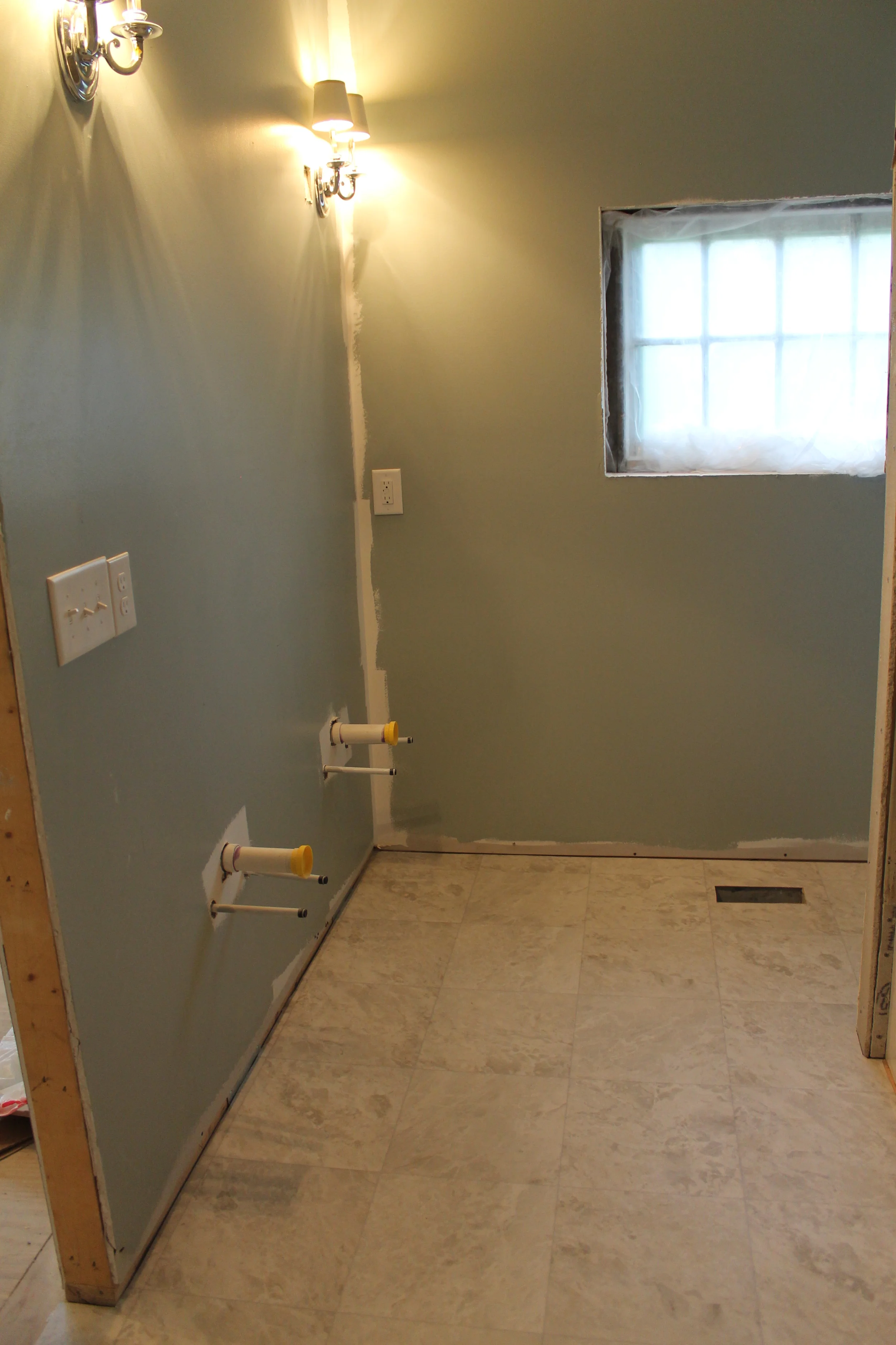 We were able to finally get all of the vinyl flooring down in the bathrooms and laundry room (hip-hip-hooray!), so I wanted to post a full and detailed tutorial on the process we used. Yet again, this project took twice as long and cost twice as much as I originally thought it would, but Brian and I are pretty thrilled with the outcome.