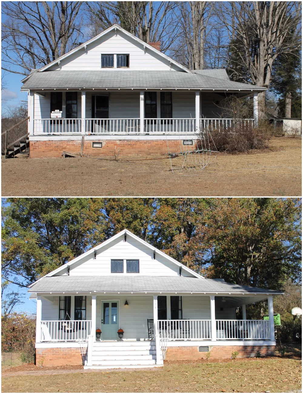 There is still many a project on the docket including new paint or siding, landscaping, driveway top coat, and a new roof. However, as fall turns into winter, we are enjoying the cooler weather on the front porch. :)
