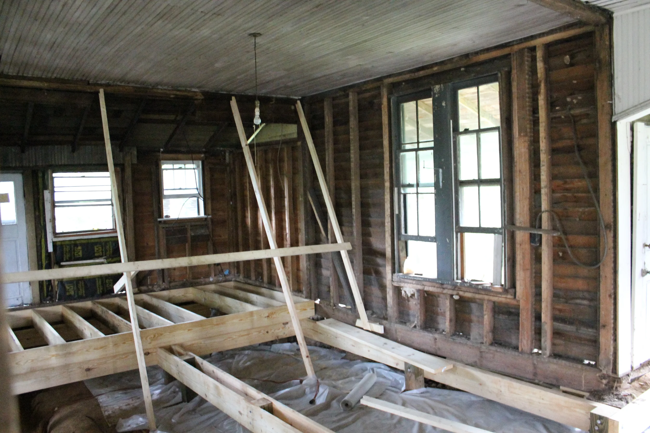 Oh boy. In case you were wondering - the photo on the left is really that crooked. The structure was sagging quite a bit due to our unwanted house guests: termites. Grrrr. So! Clearly, we had our work cut out for us. The new wood you see on the right is a temporary support that is holding up the house. The large hole in the dirt is for our new footers. Luckily, we had the help of Angi Construction on our side to make this 115 year old house of ours safe and sturdy again. Pretty soon, with a little bit of contractor fairy dust, it was looking like this!