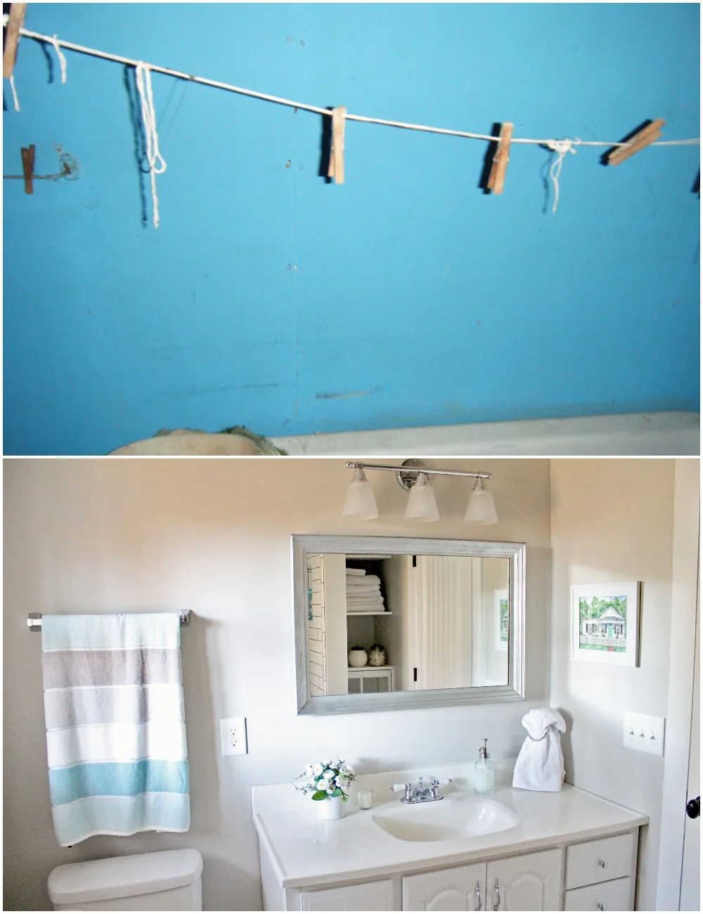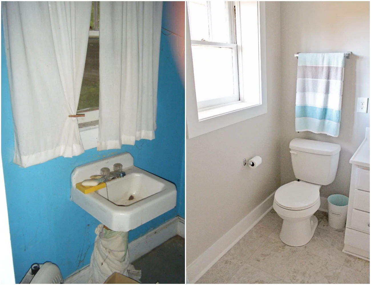 And here she is in all of her budget-friendly glory! The vanity was a $75 Craigslist find that included the faucet! The mirror was a $6 Goodwill purchase and the vanity light was $29 from Ebay. My only regret is the toilet. We went with the cheapest option and I wish we had splurged a little bit. We still need to dress it up with some towels, accessories, and touchup paint, but I'd call this complete. :) Thanks for making it to the end with me, friends! I hope your bathroom projects aren't nearly this extensive, but if they are, hopefully you can see the can still be finished out on a budget.