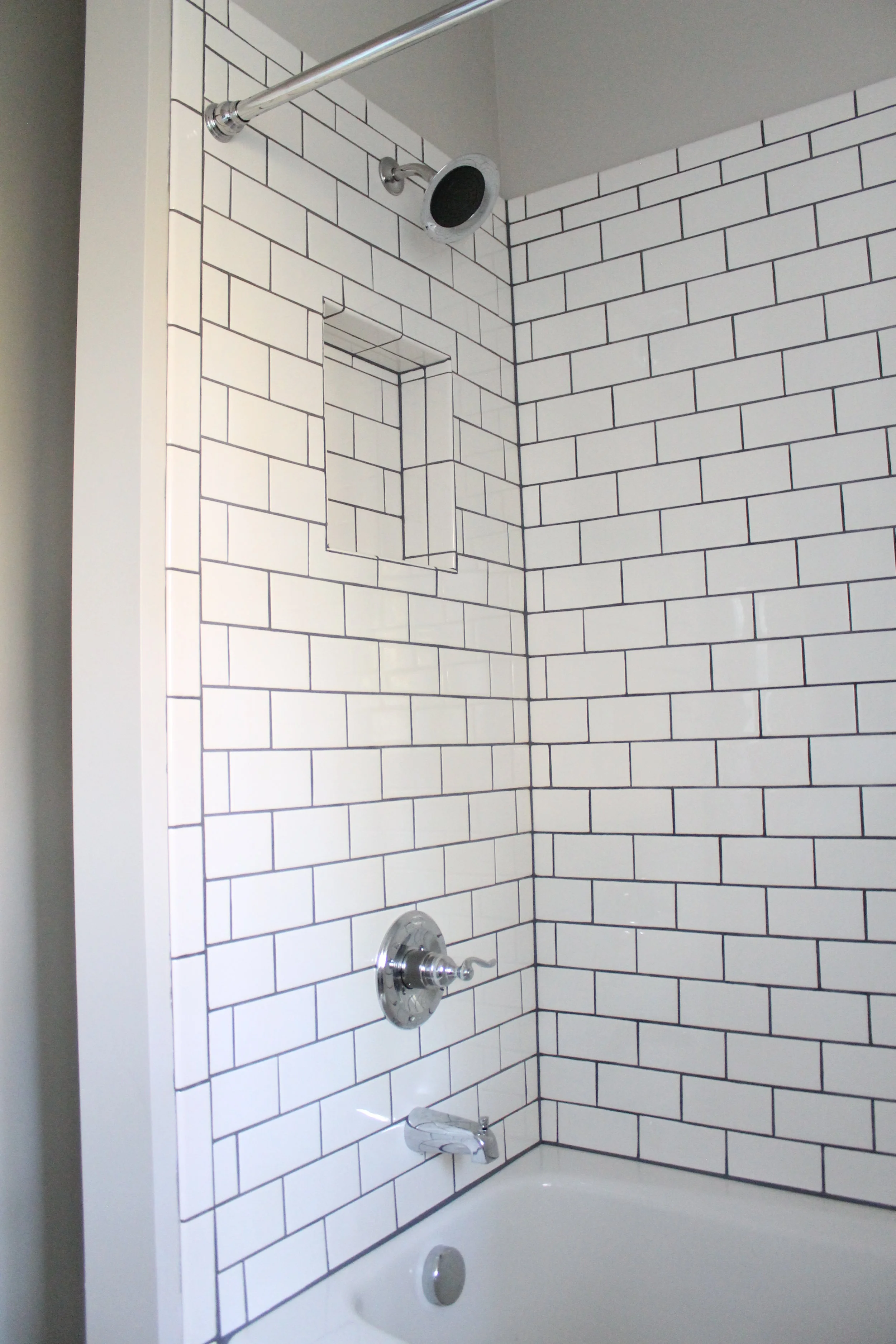 In retrospect, it would have been a heck of a lot faster to install a tub surround instead of subway tile but surprisingly not that much cheaper. While I cursed tiling this shower in particular (it was the third and final shower we tiled and included the terrible horrible thing that is a shower niche), I am glad we went with white subway tile. It really adds a lot to this little bath.