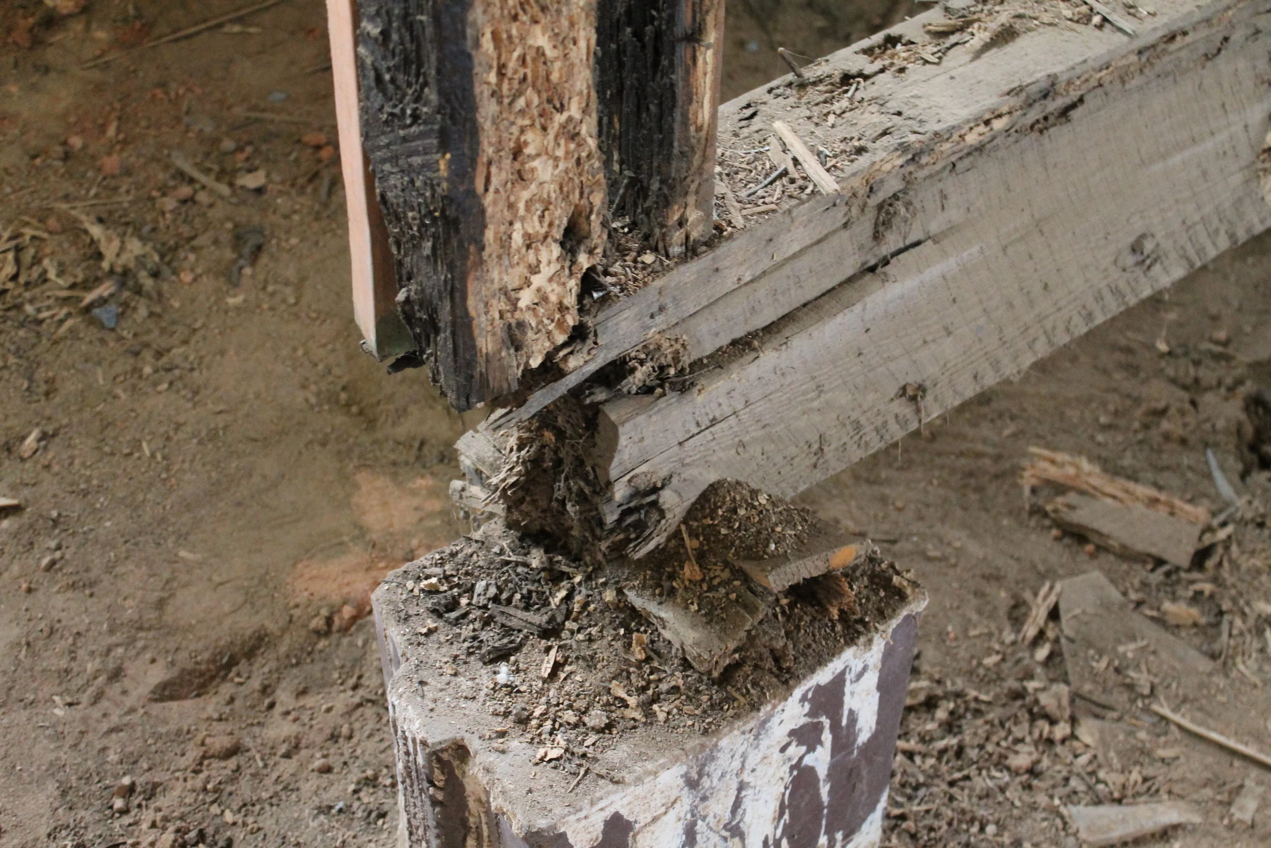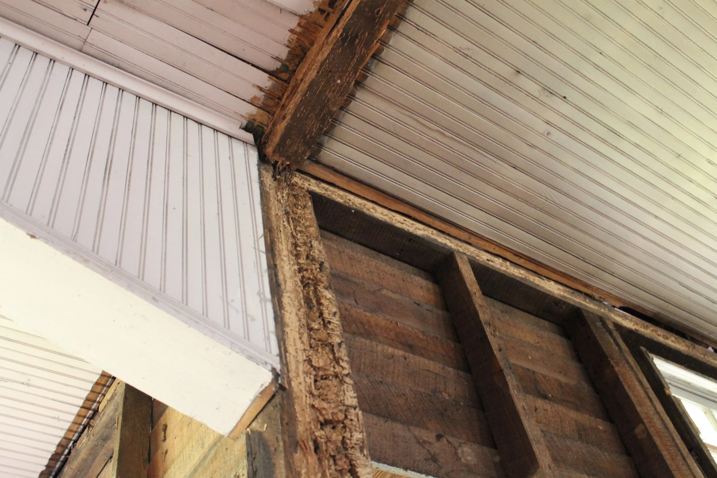 The biggest problem with the house was termites. Even though Brian's grandmother hired an exterminator, she was either taken advantage of or those termites ate the heck out of some wood in the six years the house was vacant. Homeowners, if you do nothing else to maintain your home, make sure to have pest control in place!!! The worst part about termites is that often the extent of the damage is not known until walls and floors are taken up. Once we were able to rip out floors and walls in the Myrtle House, we knew the $45,000 budget was out the window.
