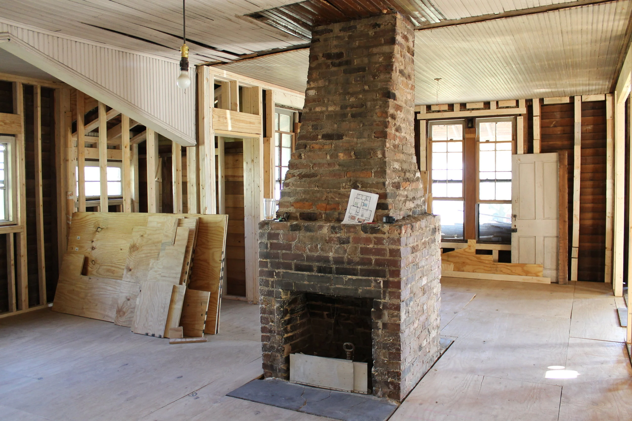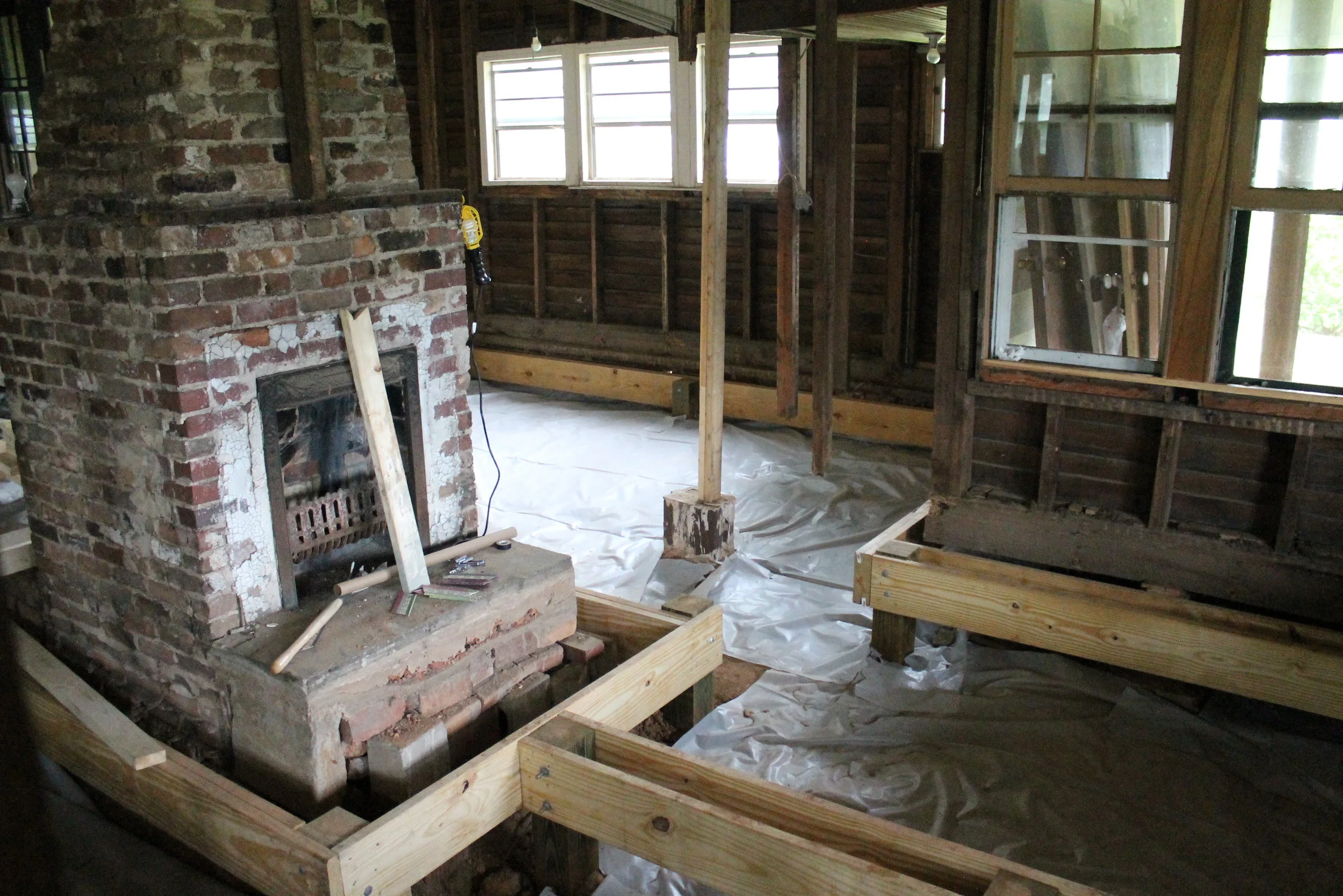 Our original plan was for Brian and I to do ALL of the renovation (we must have watched too much Fixer Upper). After it took us a whole weekend to remove the paneling from ONE wall (only about 20 walls to go!), we realized we were in way over our heads and enlisted the help of a friend and contractor. He gave us an estimate of about $45,000 and we got started.