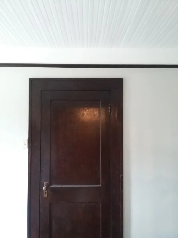 Once the walls were sanded, I was able to start painting! I tackled the beadboard ceiling first, and then the walls. Word to the wise, if you are painting beadboard, make sure to get a large nap roller (1/2" is best in my experience). This helps the paint get into all of the nooks and crannies. Since the house was so dark when we viewed it, I thought they walls were ivory, but really they were a light beige color. The house seems so much brighter already by replacing the beige with white! (Sorry, my phone pics are awful.)