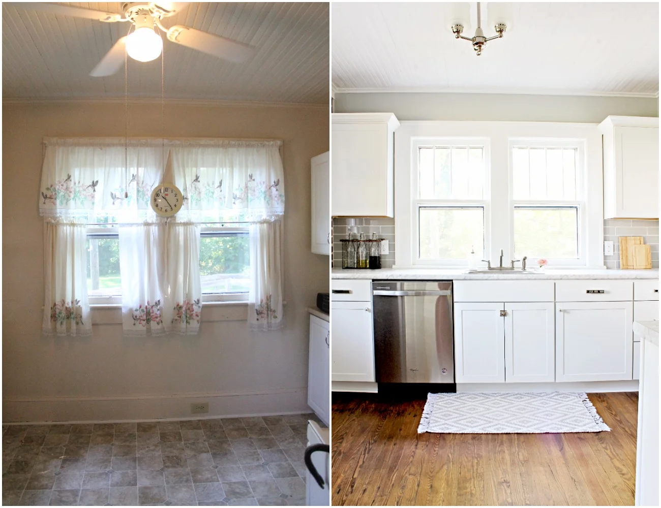 Y'all know I'm impatient (saving the best for last doesn't work for me, lol), so next up on the house flip before and afters is another personal favorite - the kitchen! Although this room is small, there were a lot of original features we were able to uncover to redeem the lack of space including the brick chimney and the pine floors. Removing the layers of vinyl was a beast (and probably the first moment we thought, "what have we gotten ourselves into?") but totally worth it in the end. The kitchen gets gorgeous afternoon sunlight and it seems like such a cozy little spot to whip up a meal in. We did put a lot of the project budget and time into this room (we literally got rid of everything but the kitchen sink!), but I think we'll get every penny spent back. Here is a summary of the projects we did: