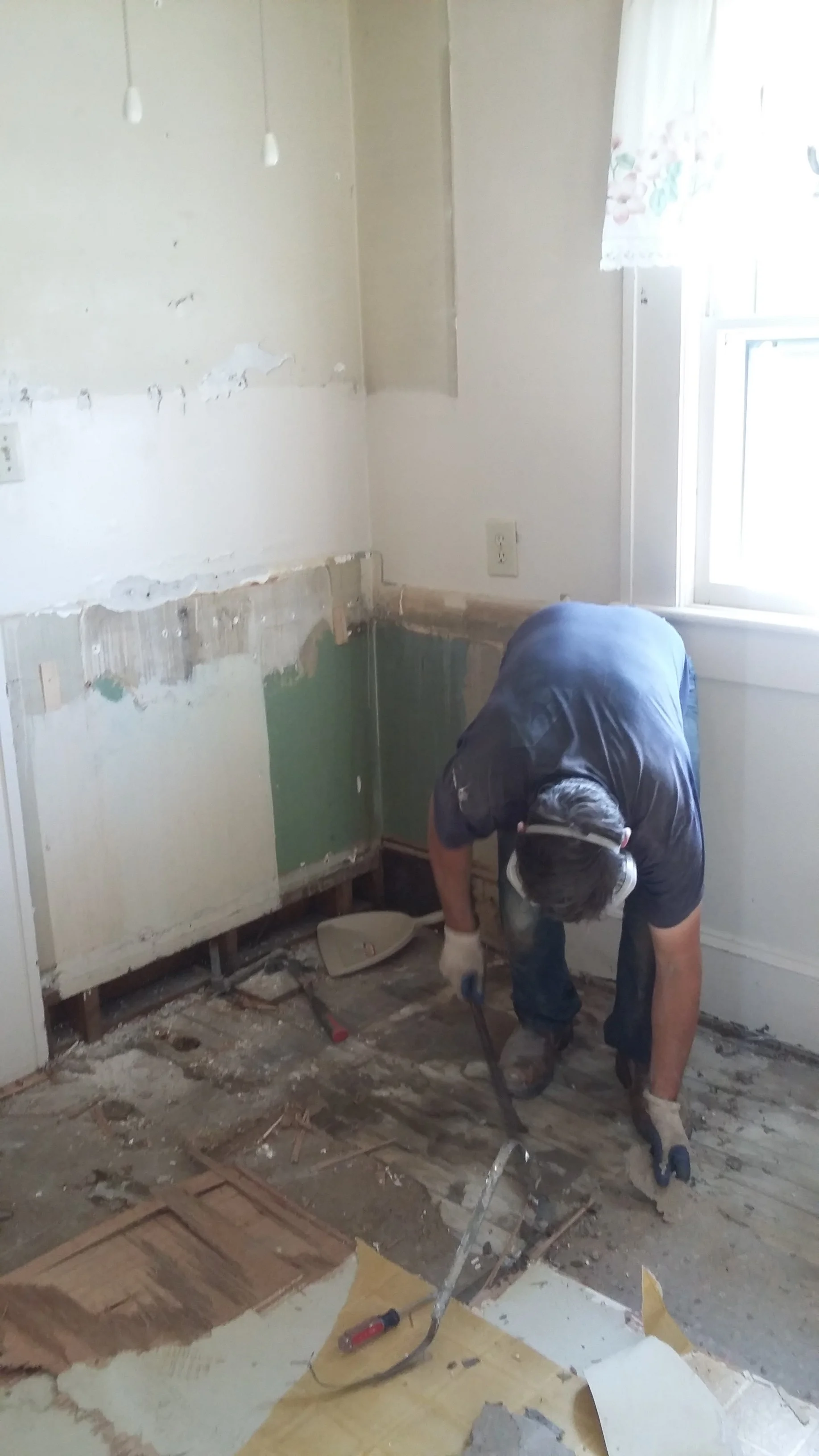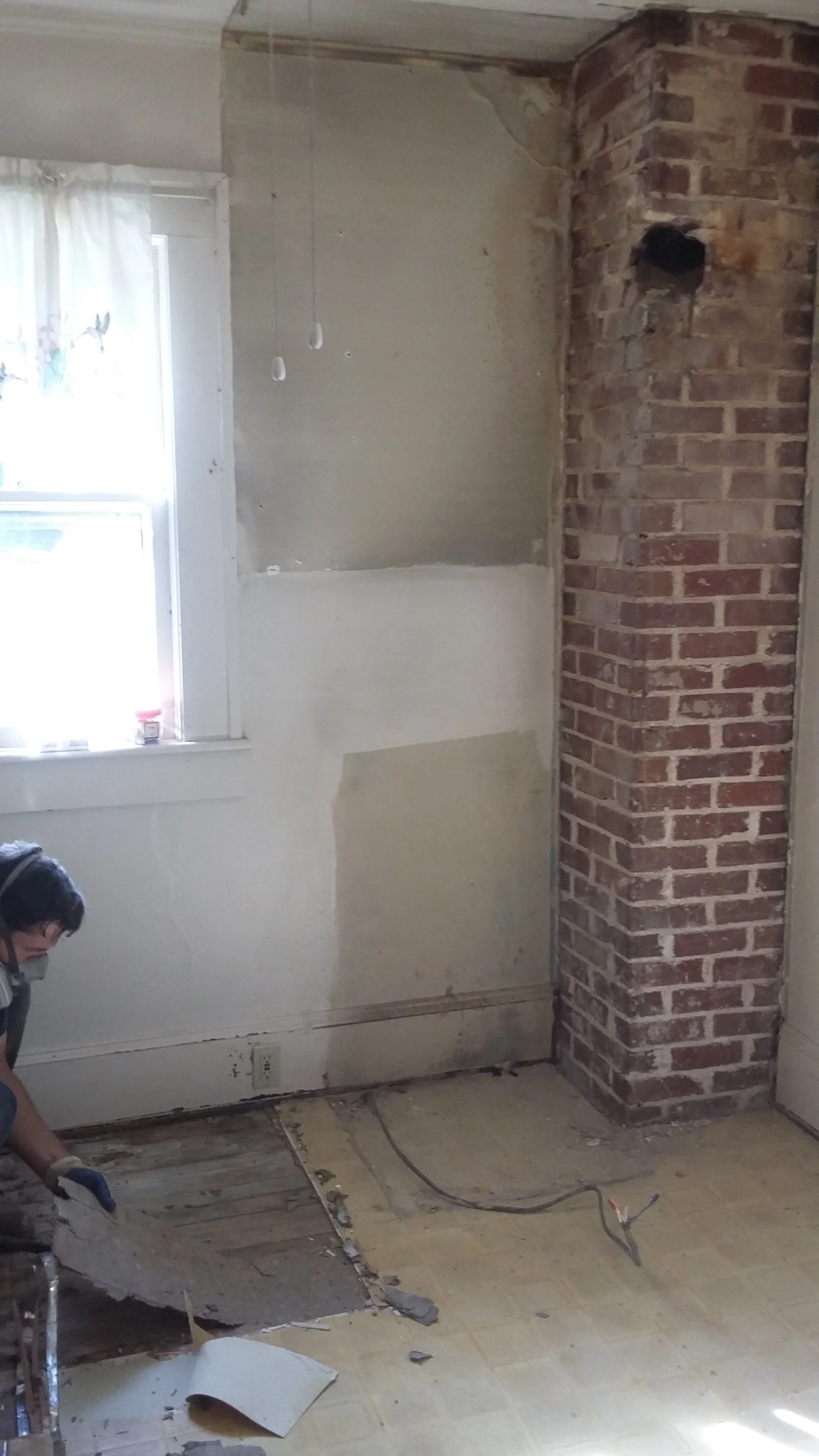 This was by far the dirtiest room in the whole house once demo was finished. I swear, Brian wasn't the only one working, even though these photos show otherwise...